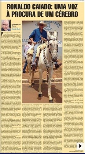 O procurador de Justiça e ex-senador cassado Demóstenes Torres acusa o líder do DEM no Senado, Ronaldo Caiado, de ter sido financiado pelo contraventor Carlos Cachoeira nas campanhas que disputou à Camara Federal nos anos de 2002, 2006 e 2010. Segundo Demóstenes, as digitais da contravenção seriam facilmente identificadas com uma investigação nas contas de material gráfico, transporte aéreo e gastos com pessoal. As afirmações estão contidas em artigo publicado na edição desta terça-feira (31) do jornal Diário da Manhã, de Goiânia.