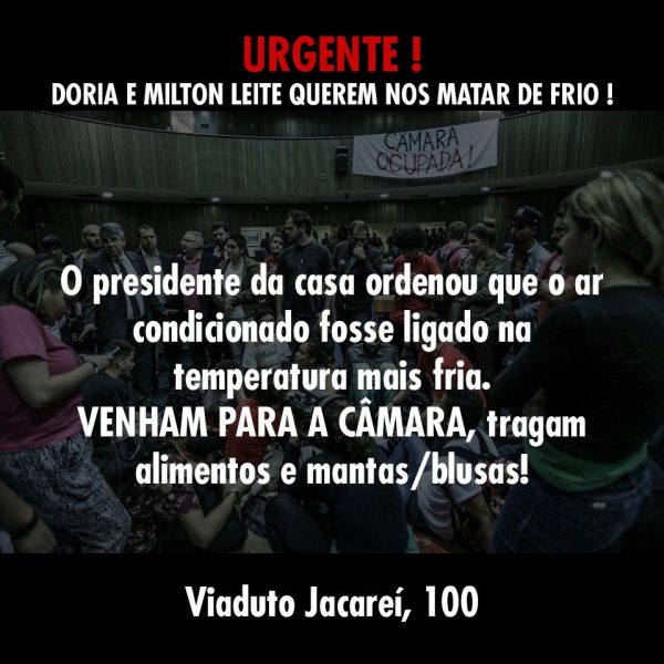 Denúncia: Presidente da Câmara de SP manda reduzir ar condicionado para forçar estudantes a deixar plenário