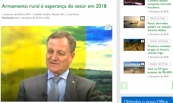 Deputado ruralista diz que o armamento no campo é a esperança do setor para 2018