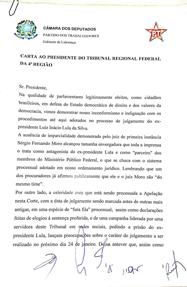 Deputados do PT entregam carta ao presidente do TRF 4 e pedem para assistir ao julgamento de Lula