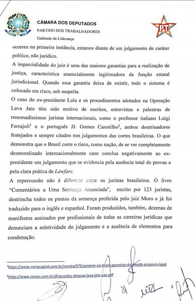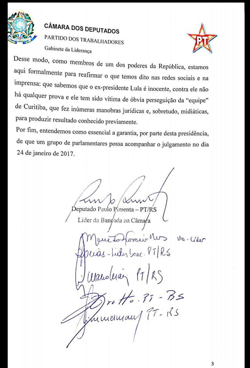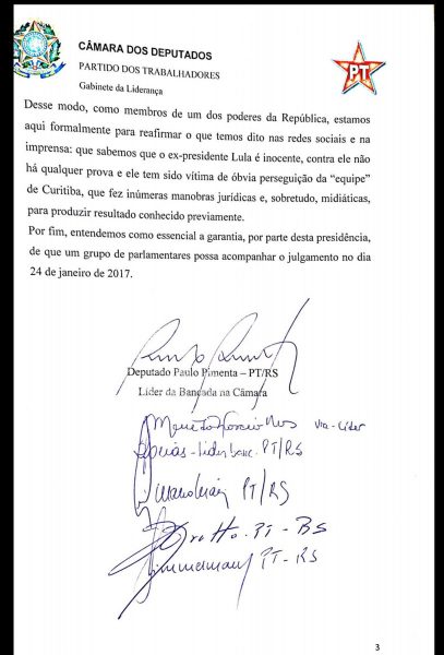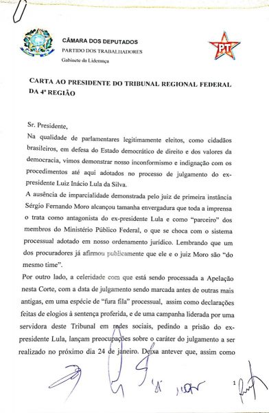 O DCM reproduz o documento que deputados do PT entregaram na sexta-feira, dia 12, ao presidente do Tribunal Regional Federal da 4ª Região, Carlos Eduardo Thompson Flores.