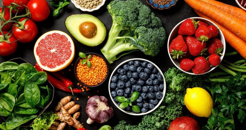 Verduras como espinafre, couve e rúcula são ricas em antioxidantes e fibras, que ajudam a equilibrar o intestino e proteger as células. As frutas, especialmente as vermelhas, como morango, amora e mirtilo, são fontes potentes de compostos que combatem os radicais livres.