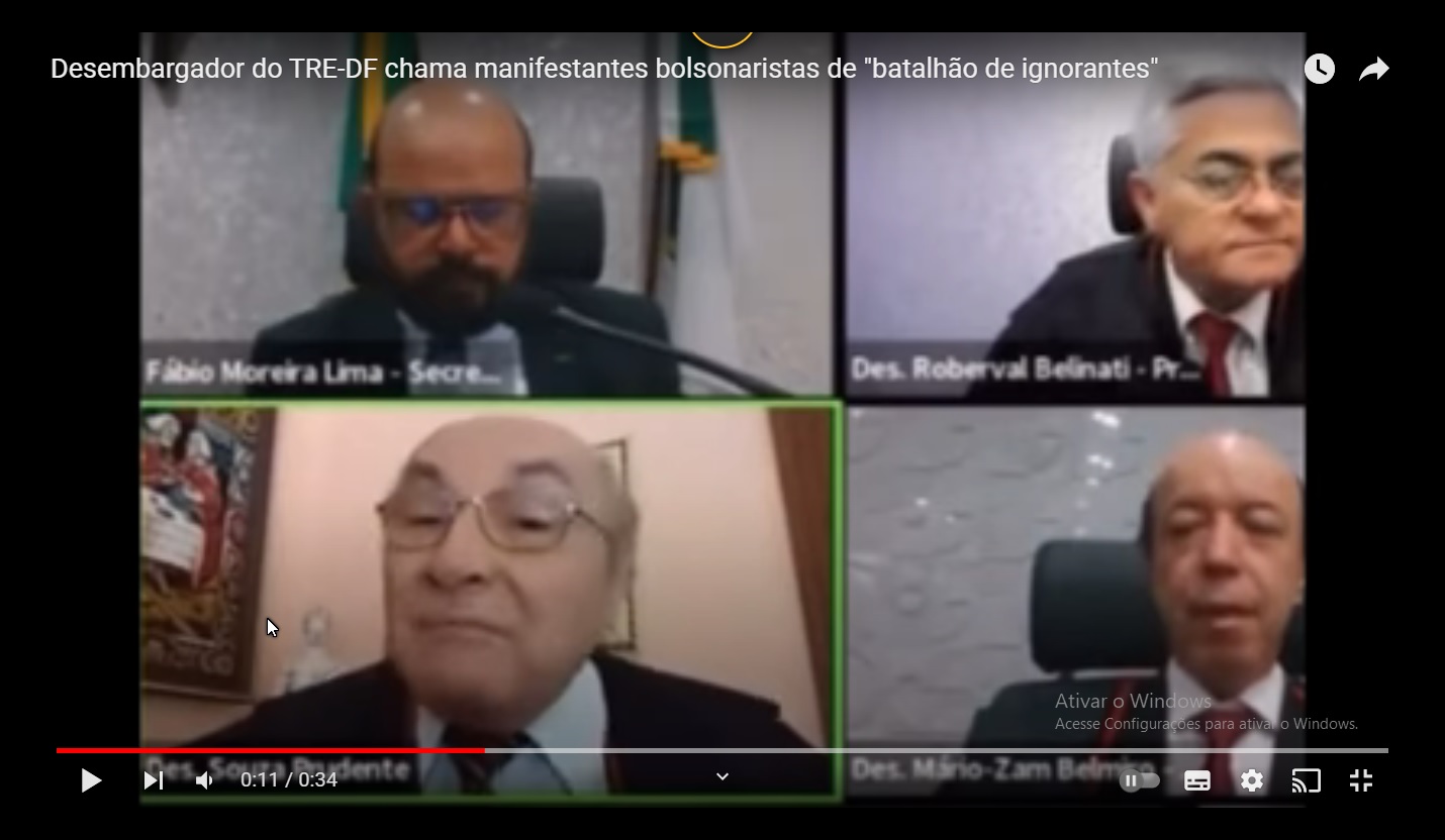 Durante uma sessão virtual do TRE-DF, o Desembargador Souza Prudente questionou a inação dos militares para acabar com a manifestação que vêm ocorrendo na frente do Quartel General do Exército, em Brasília.