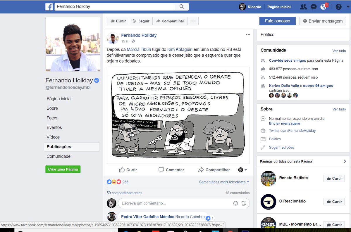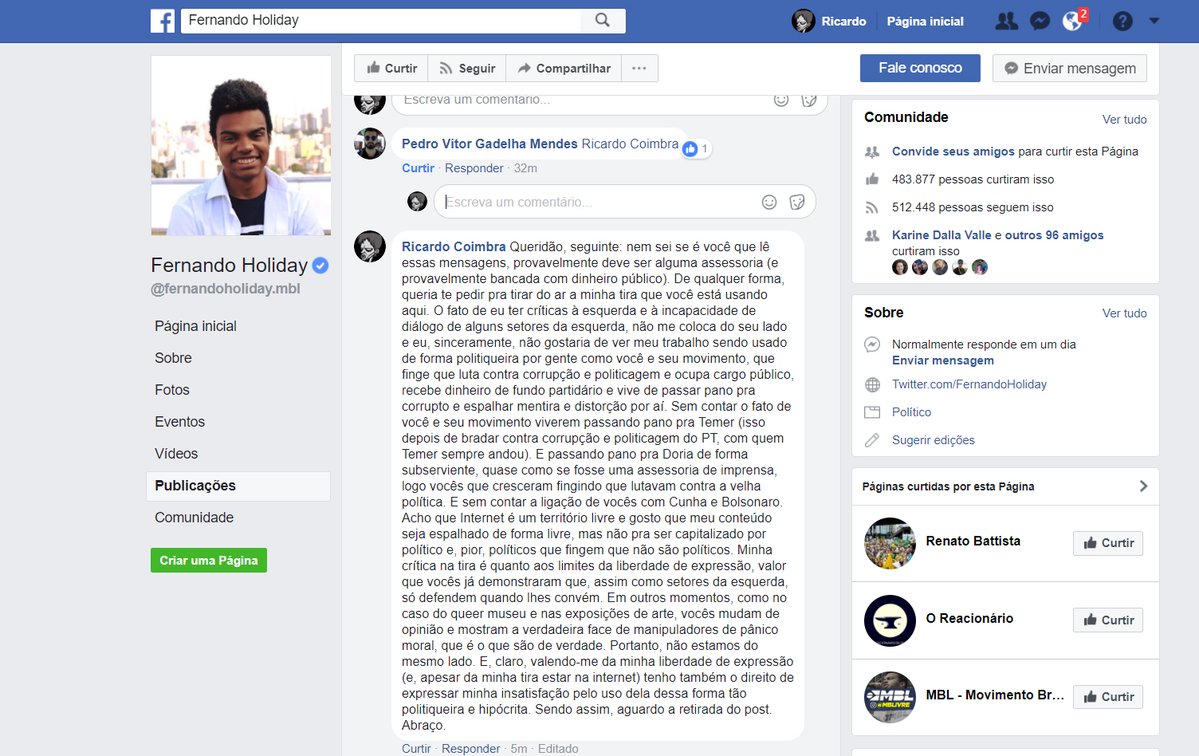 Depois de Requião trucidar Kataguiri em debate numa rádio gaúcha, é a vez do ilustrador Ricardo Coimbra dar uma sova moral em Fernando Holiday, vereador do MBL em São Paulo.