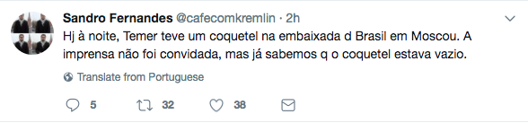 Desprestígio: gerente de hotel em Moscou vetou coletiva de Temer no hall