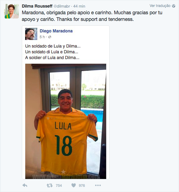 Dilma agradece apoio de Maradona