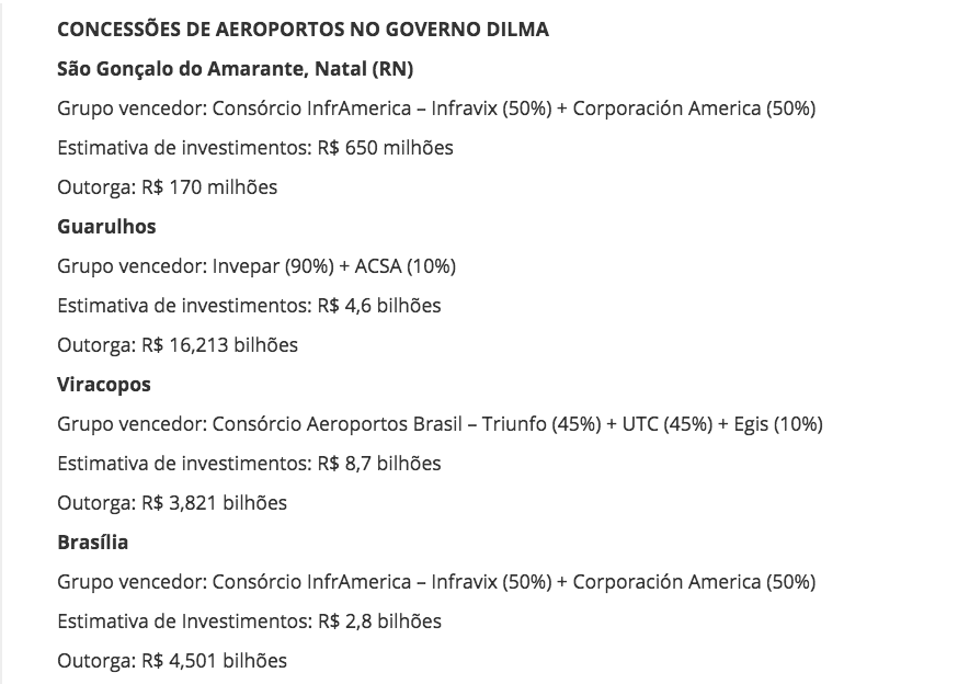 3. O episódio em que cita um inacreditável benefício à Odebrecht pelo governo Dilma Rousseff, durante o processo de concessões de aeroportos, mostra que o senhor Antonio Palocci mente.