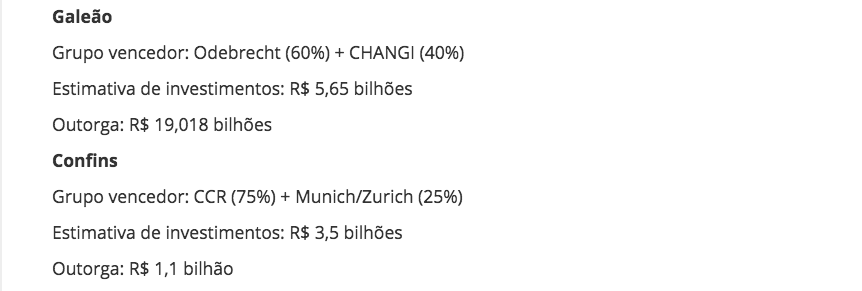 6. Eis um fato que desmascara as mentiras do senhor Antonio Palocci. A empresa Odebrecht, que ganhou a disputa junto com o grupo Changi, pagou R$ 19,018 bilhões pela outorga do Galeão. Sem dúvida, é a maior outorga paga por aeroportos no Brasil, o que afasta a acusação de beneficiamento indevido declarada por Palocci.