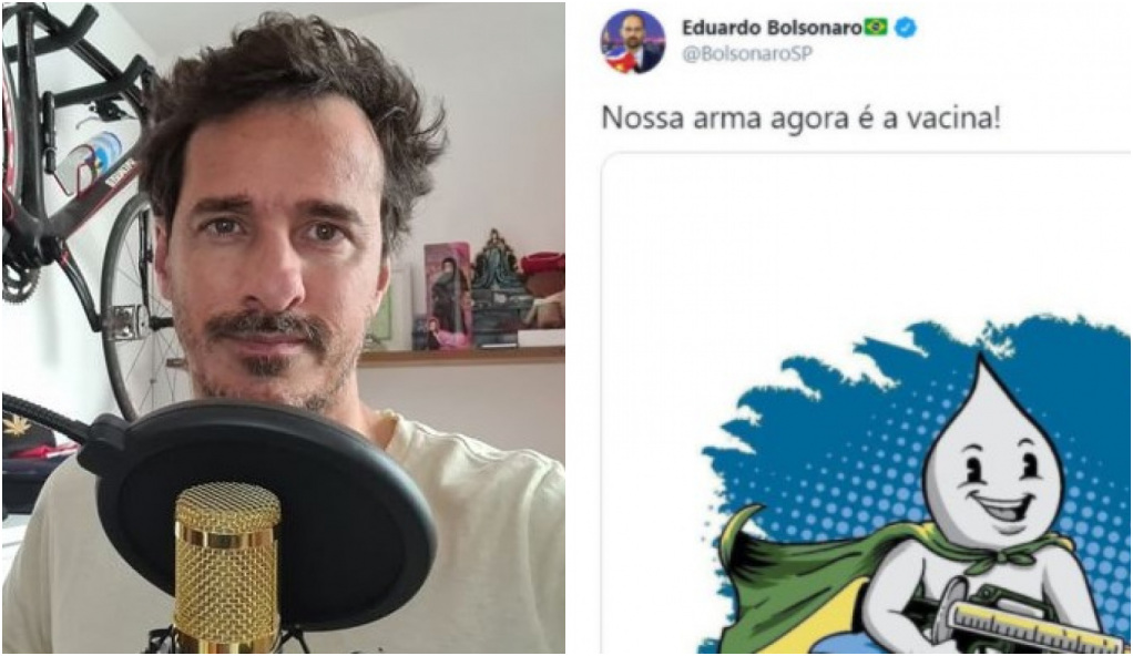 Rodrigo Cebrian foi às redes sociais nesta sexta-feira (12) apontar quão impressionante foi o “efeito Lula” no governo de Jair Bolsonaro (sem partido) após o deputado federal Eduardo Bolsonaro (PSL-RJ) publicar uma versão do Zé Gotinha segurando uma vacina como se fosse uma arma.