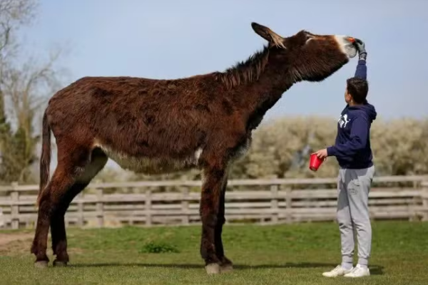 Derrick, o burro (Reino Unido) — com 167 cm de altura, vive no Santuário de Burros Radcliffe, em Huttoft (Lincolnshire), e passa a ser oficialmente o burro vivo mais alto. — Foto: Divulgação/Guinness World Records