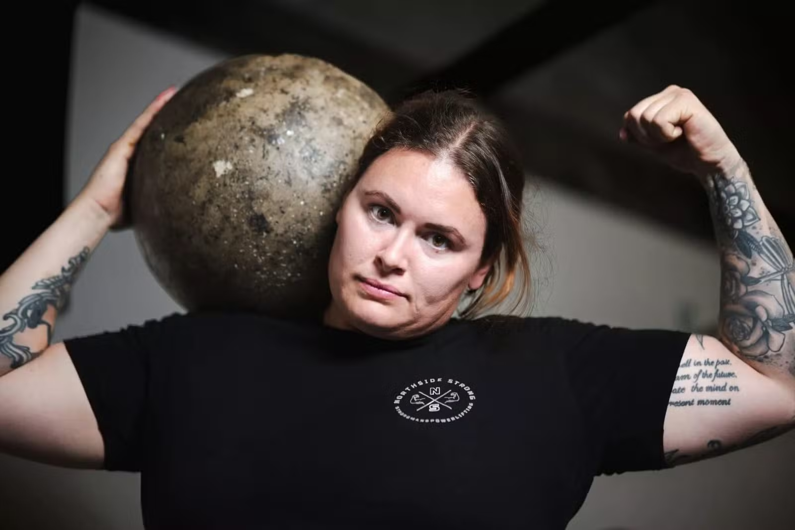 Nicole Genrich (Austrália) — ergueu a pedra atlas mais pesada registrada, com 180 kg — um feito digno de força bruta e controle técnico. — Foto: Divulgação/Guinness World Records