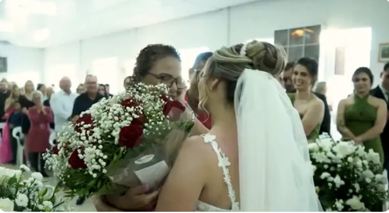 Doadora de medula óssea, Daniela Cervi foi surpreendida no dia do seu casamento. No meio da cerimônia, que aconteceu em Cascavel, no Paraná, no começo de novembro, ela recebeu uma homenagem de Andreia Ferreira, uma paciente com leucemia grave que recebeu sua doação em 2021.