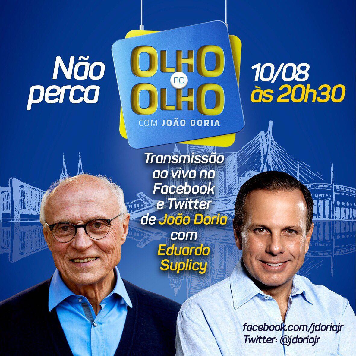 Doria anuncia entrevista com Suplicy na prefeitura com transmissão ao vivo