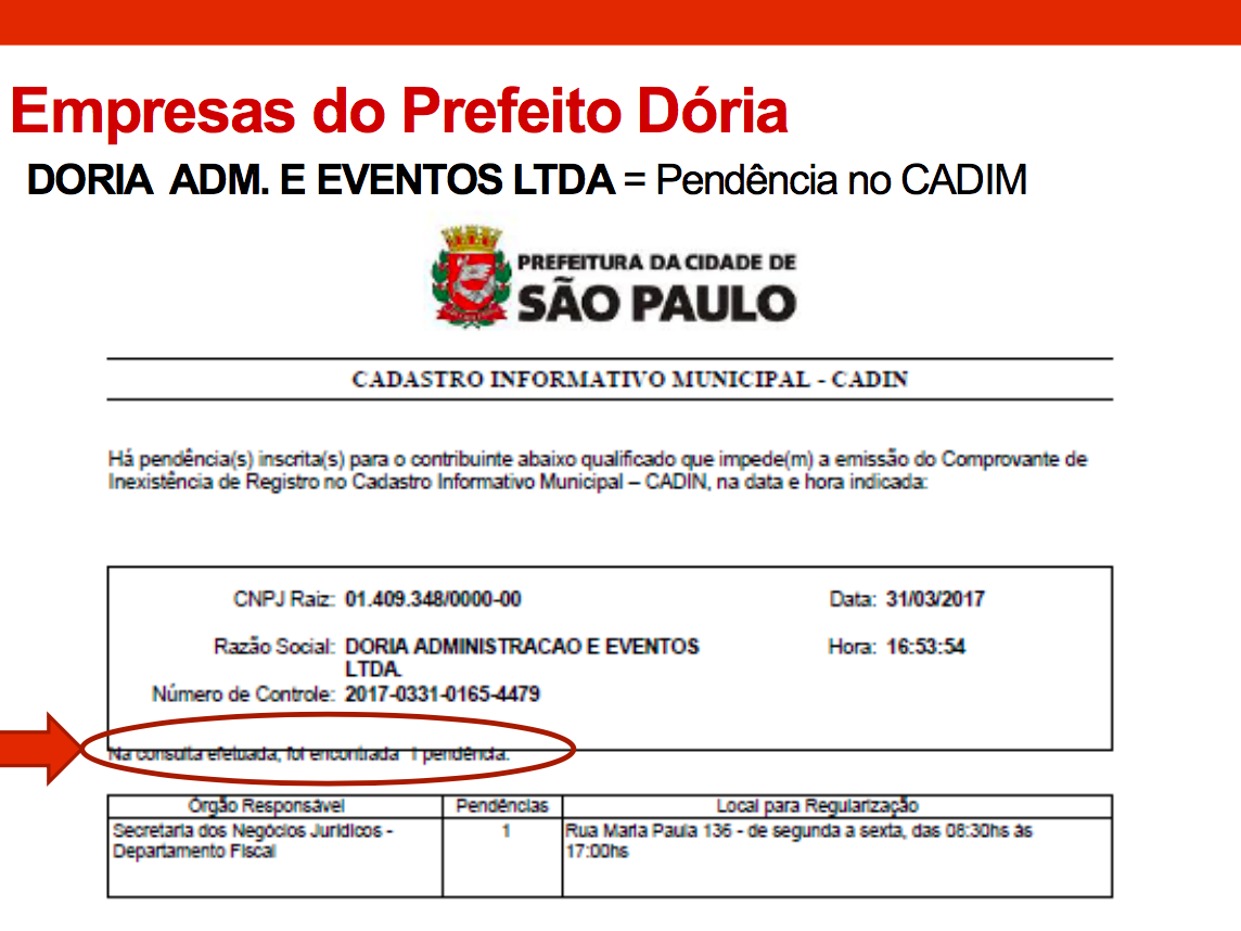 Doria também tem dívida de empresas com prefeitura e União, diz vereador