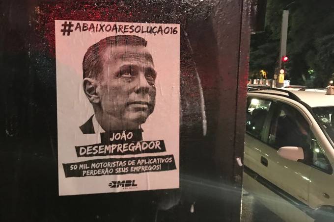 Aliado do tucano, o movimento colou cartazes com críticas a Doria, relacionado ao plano dele para regular os aplicativos de veículos.