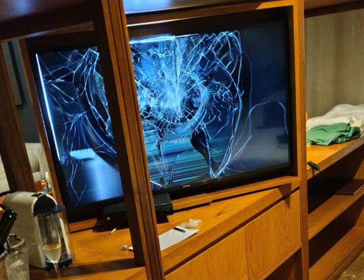 As imagens mostram o ambiente completamente desordenado, com uma TV quebrada e diversos objetos espalhados pelo chão. Detalhes do quarto revelam indícios que podem ter relação com o ocorrido: um isqueiro, partes de latinhas queimadas, cera de vela derretida, um canudo e substâncias suspeitas, que aparentam ser drogas, foram encontrados em uma mesa do local.