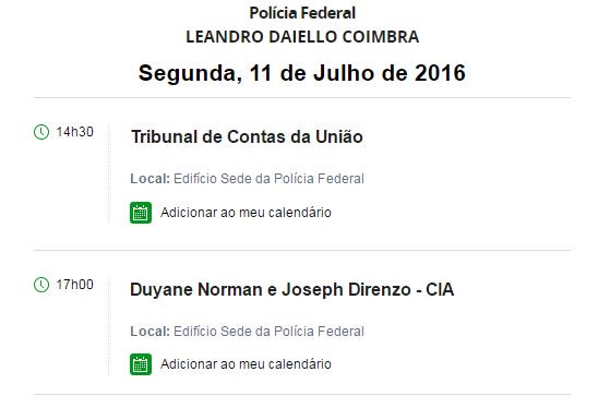No dia 11 de julho do ano passado, Norman também esteve com Leandro Daiello, diretor geral da Polícia Federal.