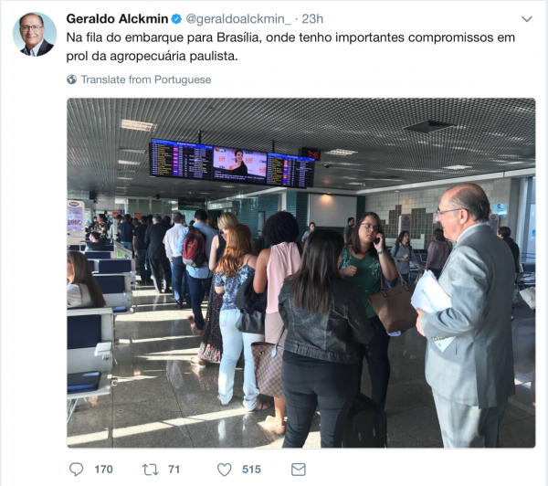 Em campanha para 2018 e com medo de Doria, Alckmin trata o eleitor como trouxa e posta foto em fila de vôo comercial