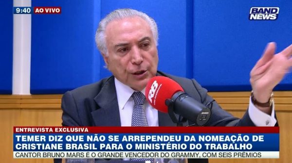 Em entrevista na Rádio Bandeirantes, Temer diz que Lula não está morto politicamente