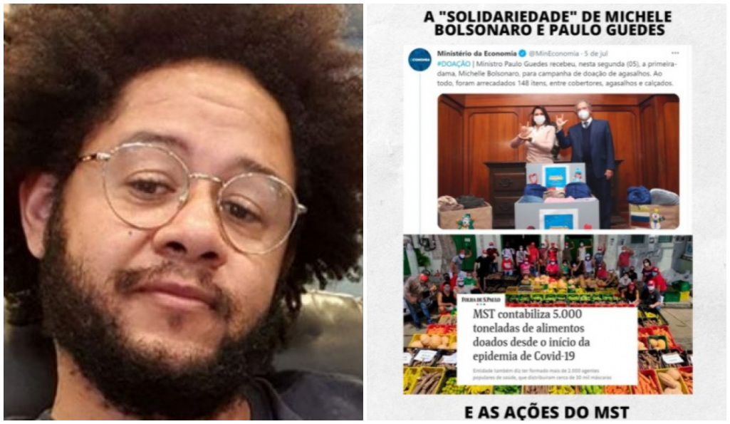 O rapper Emicida publicou uma montagem nas redes sociais nesta quinta (08) na qual compara a ‘solidariedade’ de Paulo Guedes, ministro da Economia, e Michelle Bolsonaro, primeira-dama, com ações do MST.