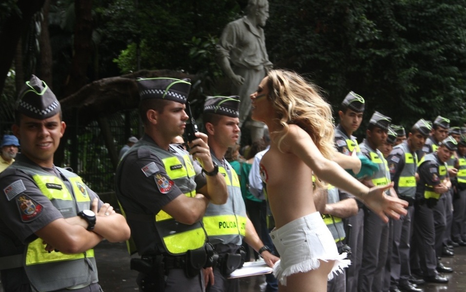 Juliana colocou dois adesivos nos mamilos e tirou a camiseta diante de dezenas de policiais, que olharam impassíveis. Aos gritos de “Fora Dilma, Fora PT, quero um País melhor, sem corrupção”, ela caminhou seminua pela mais icônica avenida da principal cidade do País, posou para fotógrafos e curiosos e ainda hoje, duas semanas após a manifestação, fatura com a atitude incomum.