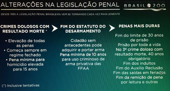 Na seção dedicada a “Alterações na Legislação Penal”, por exemplo, as prioridades são:
