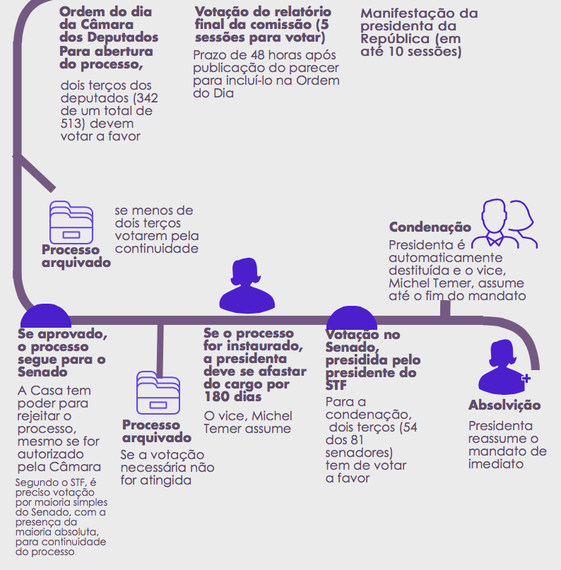 A Corte também determinou que o acolhimento do processo de impeachment na votação do Senado será por maioria simples dos 81 senadores e que o afastamento da presidenta da República ocorra, apenas, se o Senado abrir o processo. Com a decisão do Supremo, o processo de impeachment voltará a tramitar imediatamente na Câmara.