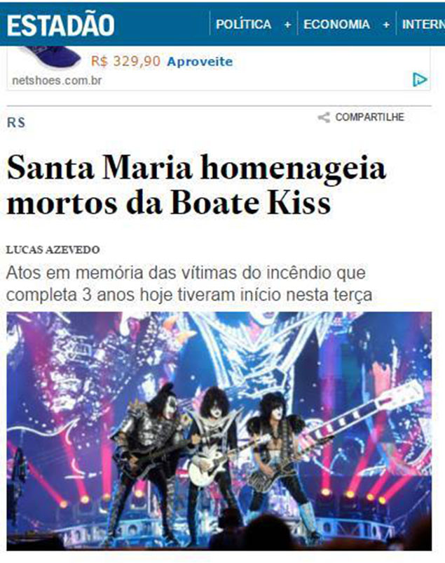 Estadão ilustra matéria sobre boate Kiss com foto da banda de rock homônima