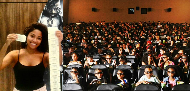 “As crianças ficaram muito felizes quando souberam. Ir ao cinema não é algo comum para grande parte delas, então foi um evento marcante. Tinha até pais e mães que acompanharam os filhos e que nunca tinham ido ao cinema. Fiquei muito feliz”, revela. Ela também conta que as crianças gostaram muito de ver um filme composto por um elenco negro – além das cenas de ação e dos efeitos causados pelos óculos 3D.