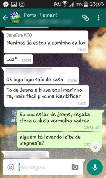 Por volta das 14 horas daquele dia, Amanda havia combinado de encontrar os integrantes de seu grupo do WhatsApp, batizado de “Fora, Temer!”, na Estação Luz do metrô. Foi quando uma das meninas sugeriu que se reunissem com membros de outros grupos que haviam marcado na Estação Vergueiro, perto do Centro Cultural São Paulo. Assim que chegou, Amanda ficou intrigada com um helicóptero da polícia que sobrevoava baixo, sempre próximo ao grupo. Também notou um homem que destoava dos manifestantes: mais velho, usava boné e óculos. Ele se apresentava aos jovens em aplicativos de paquera como “Baltazar Nunes” e, segundo os jovens, foi quem articulou os vários grupos do WhatsApp para que se encontrassem no Centro Cultural São Paulo. A conduta do capitão Botelho condiz com o que seus colegas das Forças Armadas faziam durante o período da ditadura militar (1964-1985).