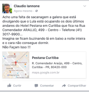 Estudante seguidor de Moro divulga nas redes suposto endereço de hotel de Lula em Curitiba