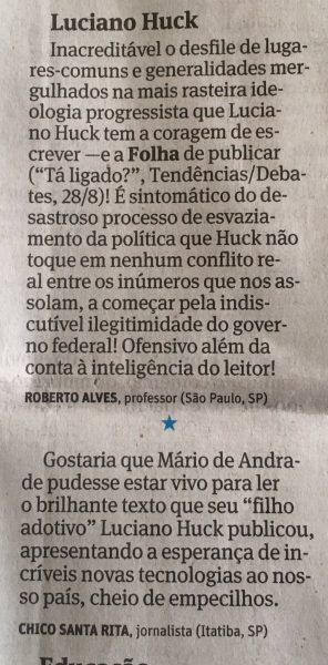 O marqueteiro Chico Santa Rita adorou o artigo de Luciano Huck na Folha vendendo seu peixe de candidato.