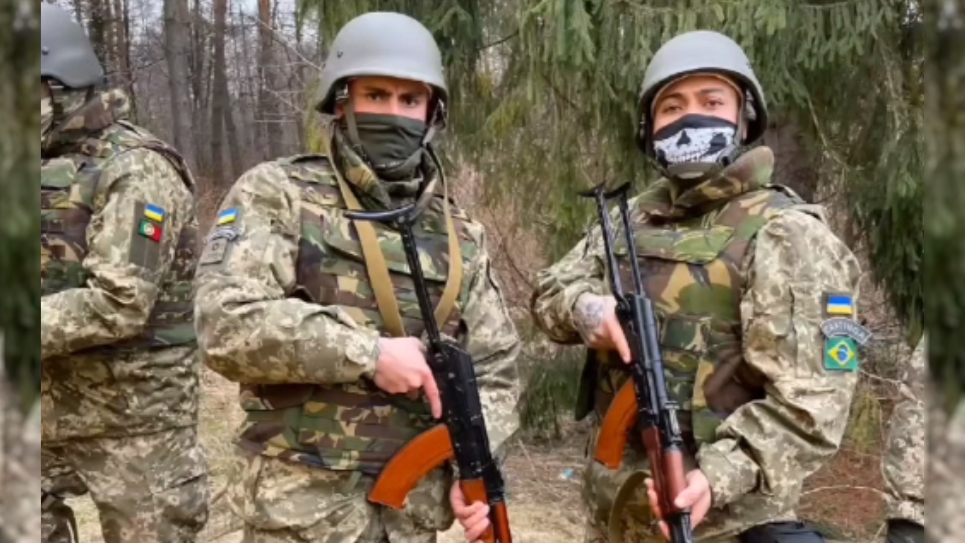 Os dois afirmam integrar a Legião Internacional de Defesa Territorial da Ucrânia, tropa formada por cerca de 20 mil estrangeiros com treinamento militar no combate aos russos, de acordo com o governo ucraniano. Os “heróis” são o paulista André Kirvaitis e o pernambucano Leanderson Paulino, ambos de 27 anos e com residência fixa na Europa. Eles afirmam que mantêm seu paradeiro sob sigilo para evitar que as forças russas descubram a localização.