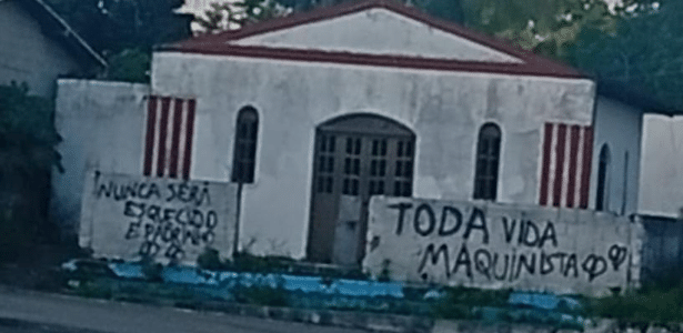 Prédios públicos e uma igreja no Quilombo Pitanga dos Palmares, em Simões Filho, na Região Metropolitana de Salvador, foram pichados após a morte de Marílio dos Santos, o “Maquinista”, condenado como mandante do assassinato de Mãe Bernadete. Em uma das imagens, é possível ver a igreja frequentada pela líder quilombola com a frase “nunca será esquecido” em homenagem ao integrante da facção.