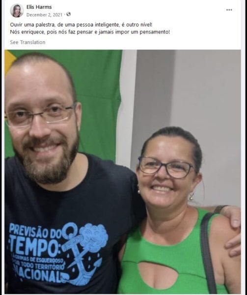 Ele já tirou uma foto com ela, em 2021, mas esqueceu seu nome. Na ocasião, Elisiane publicou a imagem nas redes e escreveu: “Ouvir uma palestra, de uma pessoa inteligente, é outro nível! Nós enriquece, pois nós faz pensar e jamais impor um pensamento” (sic).