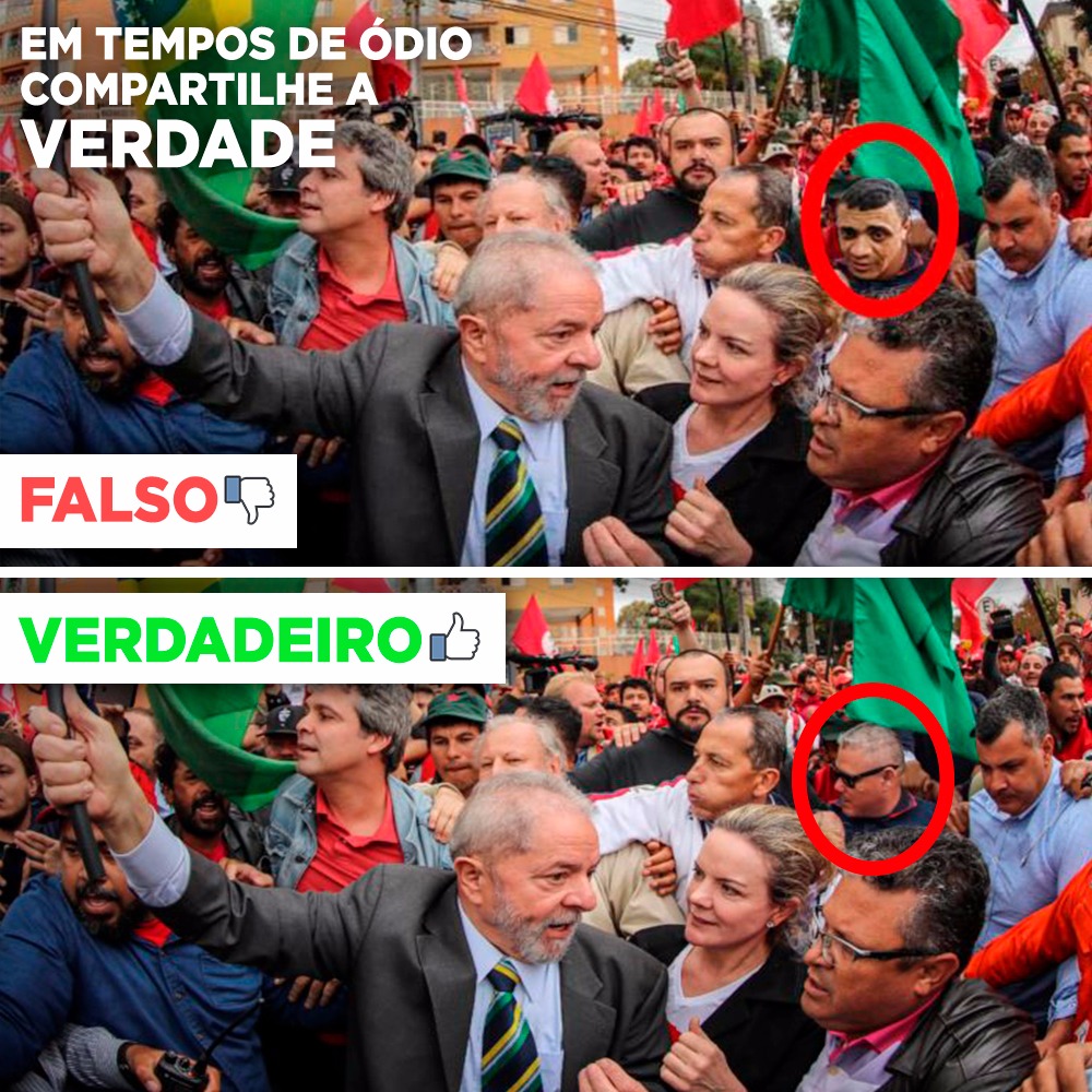 Fake news: Magno Malta espalha montagem grosseira com agressor de Bolsonaro em ato de Lula