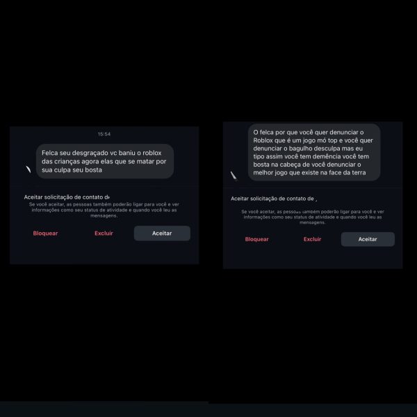 Em um dos registros compartilhados, um usuário afirma: “Olá, Felca. Todo mundo do Roblox está ficando doido, dizendo que você deixou a gente sem chat”. Em outra mensagem, consta a ameaça: “Felca, eu vou te matar”. Os prints foram publicados pelo influenciador em seu perfil.