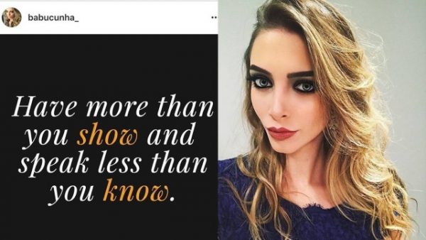 Em inglês, Babu escreveu “Tenha mais do que você mostra e fale menos do que sabe”. Para alguns seguidores da estudante de 20 anos a frase soa como um deboche, pela situação que vive seu pai.