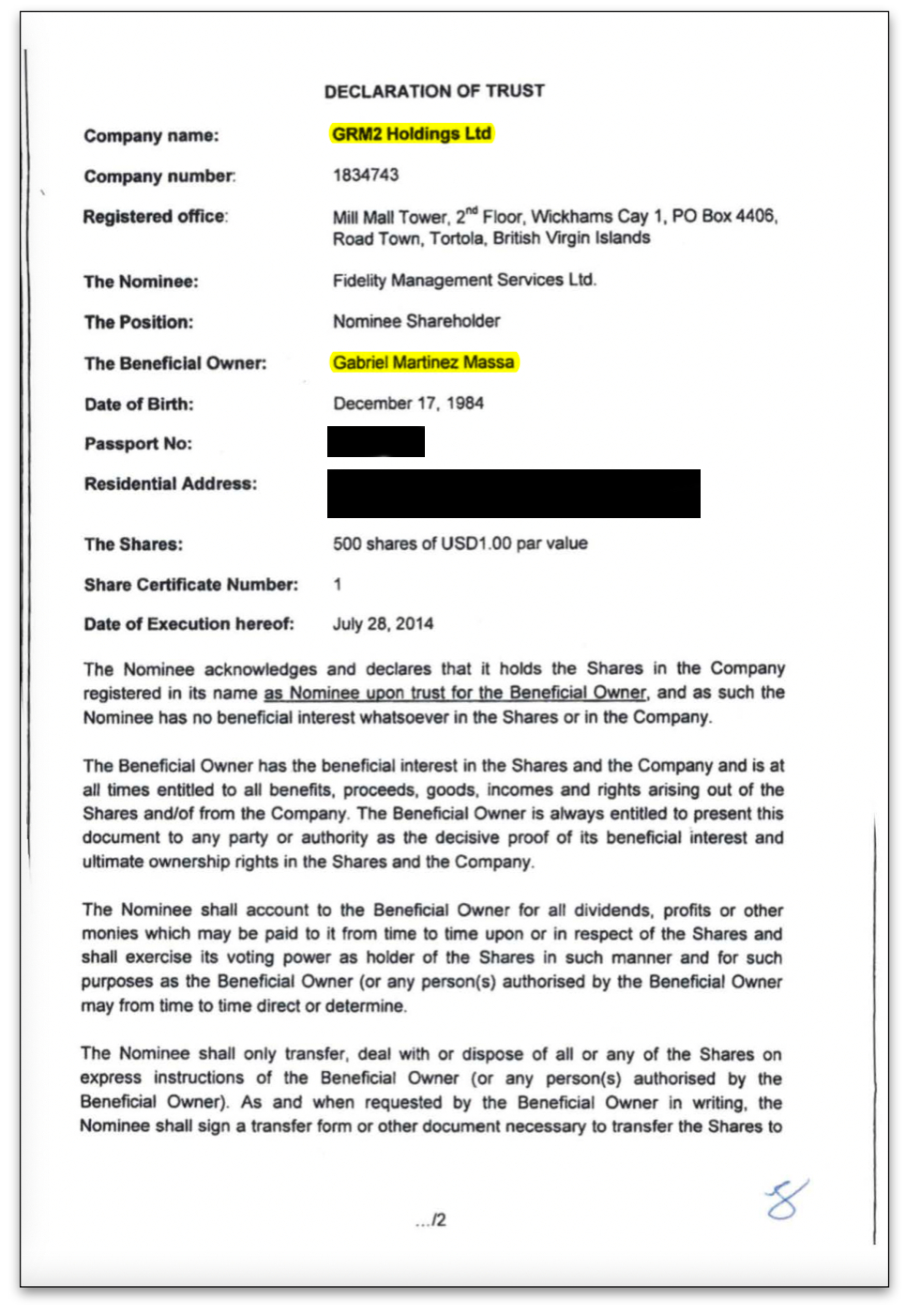 Nos documentos, não consta quando a GRM2 Holdings Ltd foi aberta. Mas Gabriel e Rafael aparecem como beneficiários do trust.