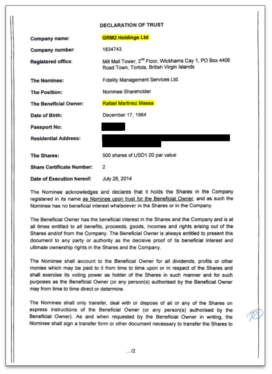 As offshores se chamam GRM2 Holdings Ltd e SMM Holding.
