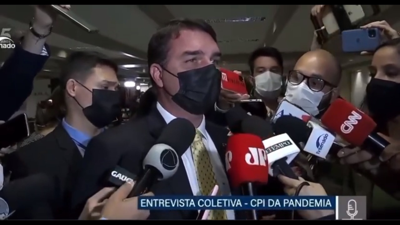 Em conversa com jornalistas antes de sessão da CPI da Covid, o senador Flávio Bolsonaro (Patriota-RJ) aproveitou para tirar sarro da comissão.