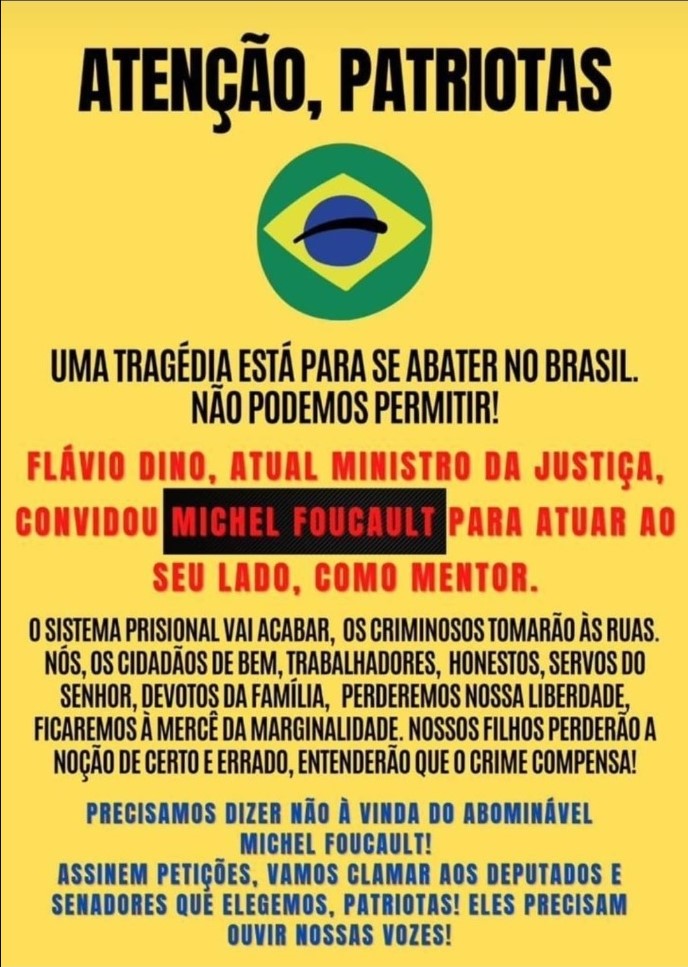 Venho a público esclarecer que não consigo ressuscitar pessoas e que, portanto, se cuida de uma mentira. Foucault faleceu em 1984. pic.twitter.com/u54oHhRjGh