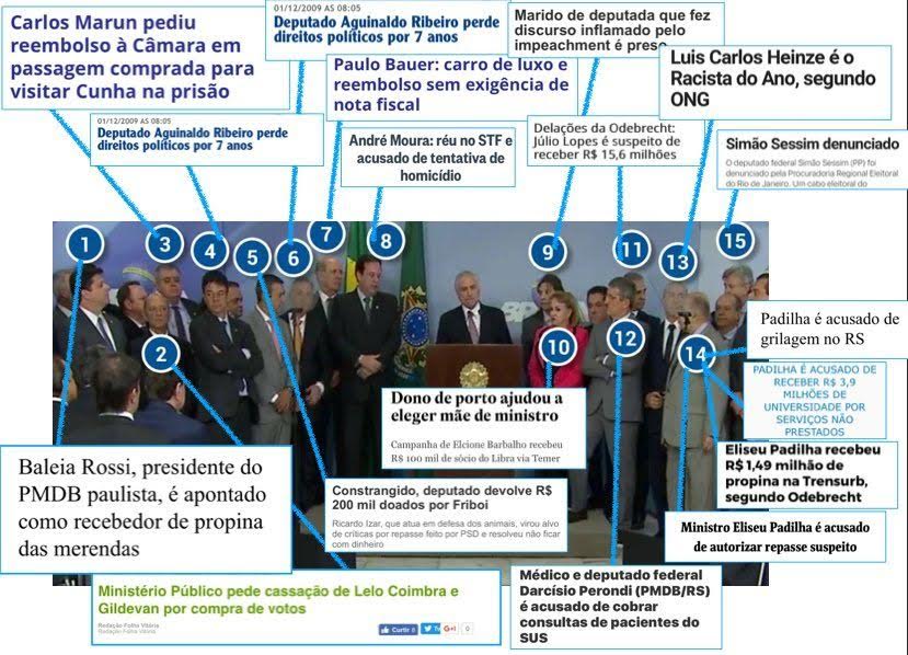 A folha corrida de cada um dos políticos que Temer pôs no palco de seu pronunciamento