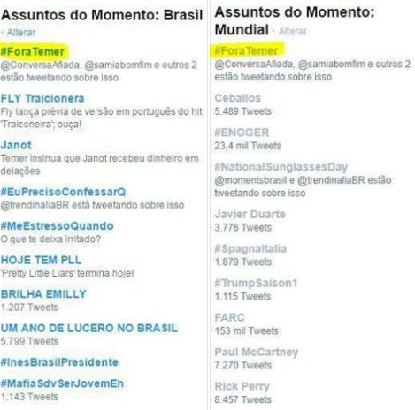 “Fora Temer” é o assunto mais comentado do Twitter no Brasil e no mundo