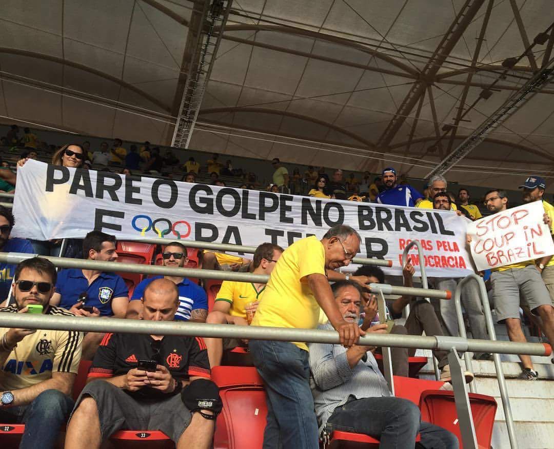 O jogo de estreia da seleção na Rio 2016 foi 0 a 0 contra a fraquinha África do Sul, mas a torcida do “Fora Temer” não decepcionou.