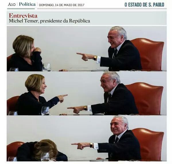 Foto de colunista Eliane Cantanhêde e Temer confraternizando em entrevista vira piada