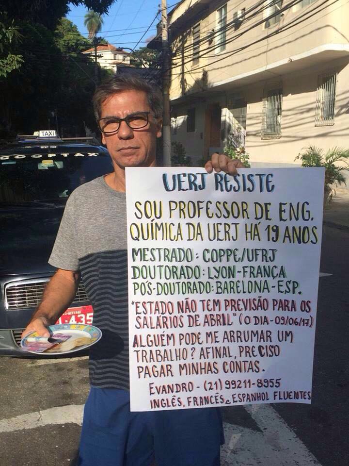 Foto de professor da UERJ pedindo emprego nas ruas viraliza