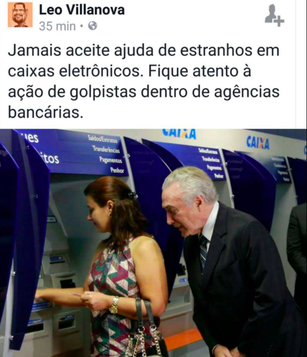 Foto de Temer acossando mulher em caixa eletrônico viraliza