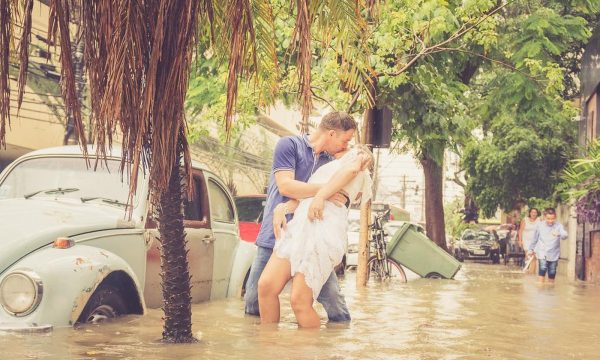 A foto dos noivos se beijando: um clássico revisitado na enchente do Rio