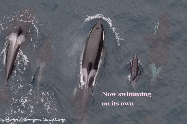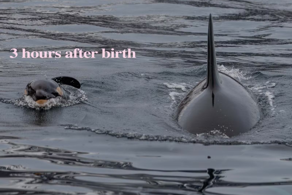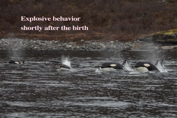 A Norwegian Orca Survey, uma das organizações presentes, relatou que o filhote se debateu intensamente durante os primeiros 15 minutos. “Testemunhamos o último esforço com a chegada do filhote ao mundo. Depois que todo o grupo se reuniu, eles ficaram extremamente ativos e formaram um círculo protetor ao redor do filhote”, descreveu o Orca Channel em suas redes sociais. As orcas pareciam estar “empurrando” o recém-nascido em direção à superfície.